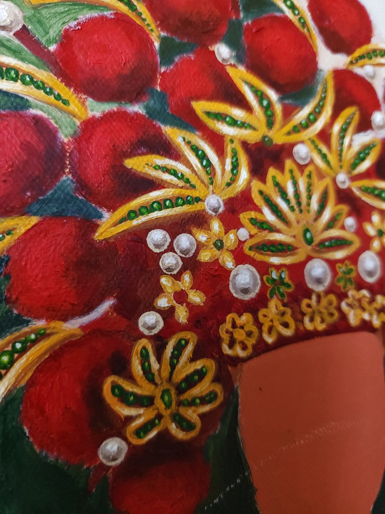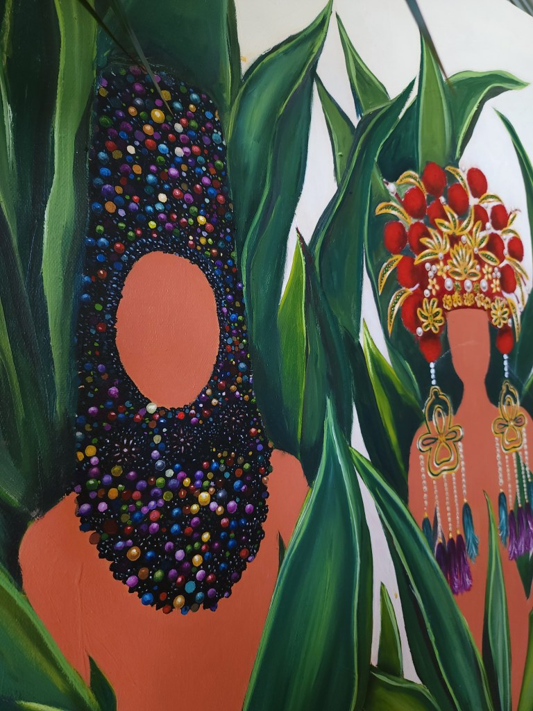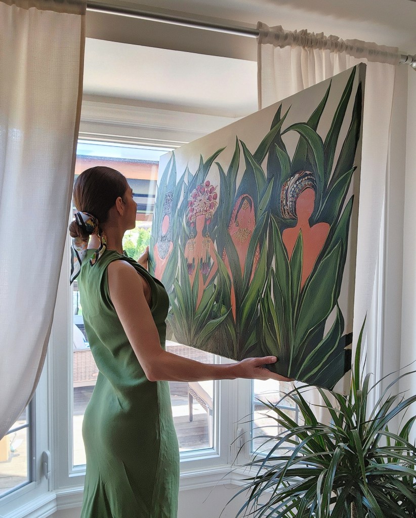 Four women, brides from four continents, are lounging in my basement for 2 years without a name, without a story, without a signature. Whenever I pass them by, I feel their judgmental stares. Ironic, since I have yet to paint their faces. The last portrait I finished, a mother with her two sons, sent me into a creative block that never ended. One day, one day, I will hopefully, pick up a brush and finish what I started.